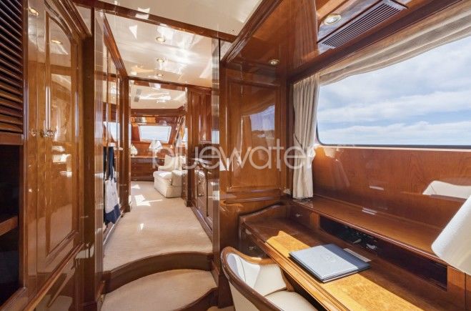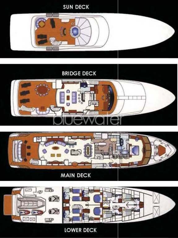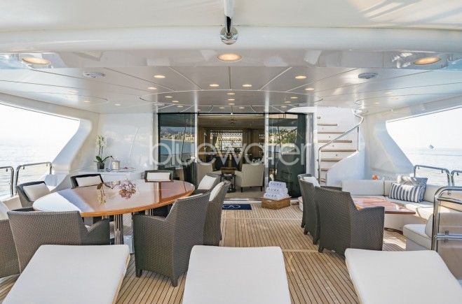 Audio & video systems are on demand throughout the yacht keeping her up to date with modern trends, including New Apple TV system, I-pod docking stations throughout, SKY TV, flat screen televisions in all cabins and lounges, portable TV + plug in points at all external seating areas including the sundeck, Jacuzzi and barbecue.