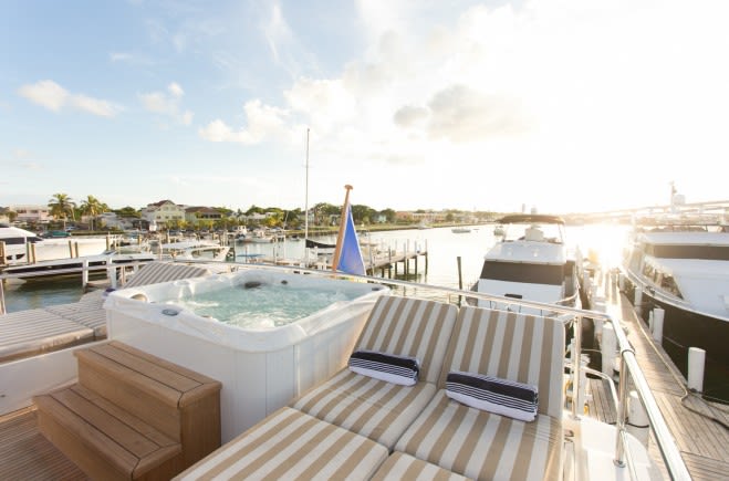 BEACHFRONT is a traditional Hargrave yacht with upgraded soft furnishings and electronics and entertainment accompaniments. She has three spacious decks for guests to enjoy. Her sundeck is partially covered and she offers large sunning beds and a six-person Jacuzzi on her flybridge.