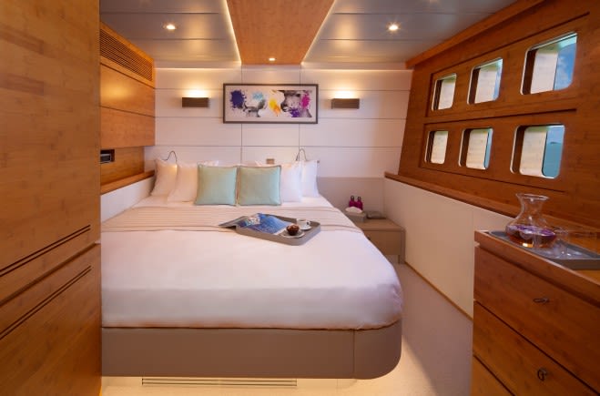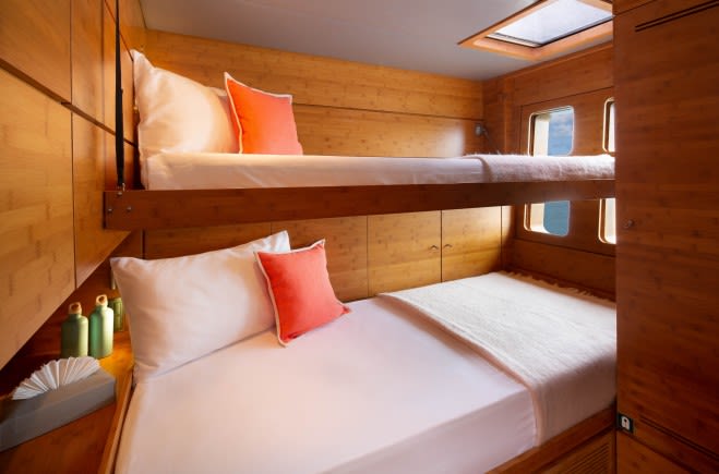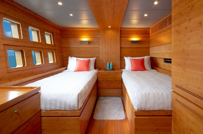 Number of cabins: 4 Cabin configuration: 3 Double, 1 Twin Bed configuration: 2 Queen, 1 Double, 2 Single Number of guests: 8