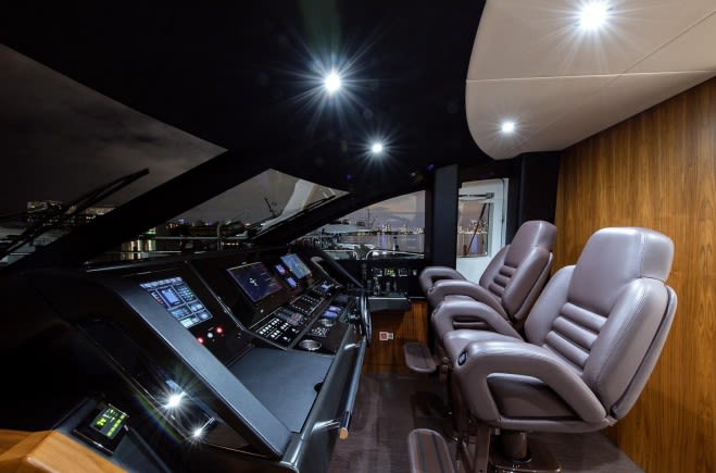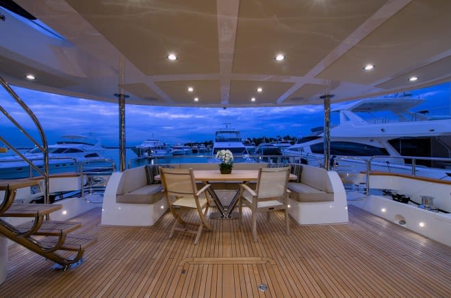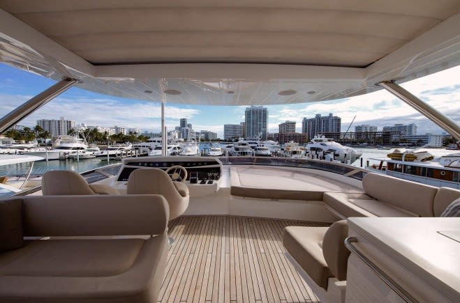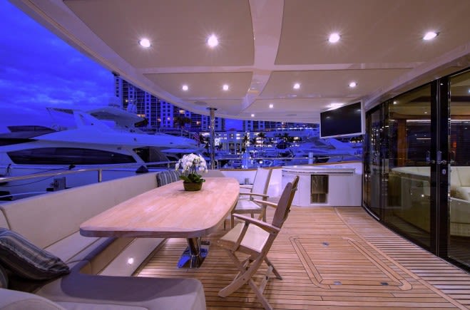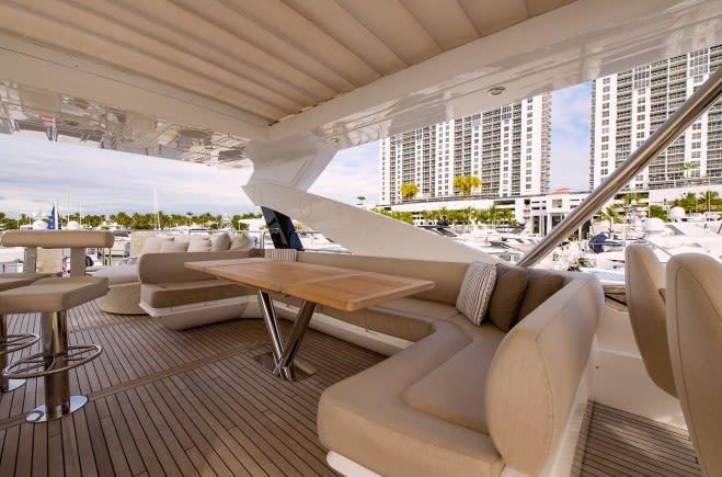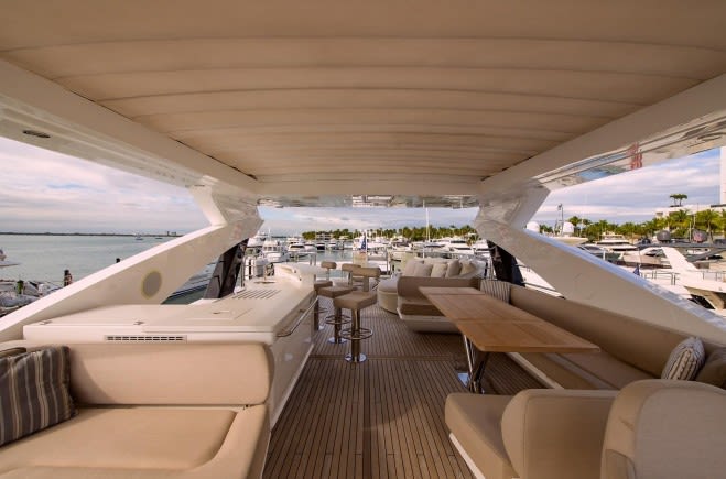 Expansive Flybridge with Retractable Sunroof, Jacuzzi Hot Tub, and dining for 10