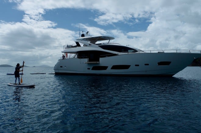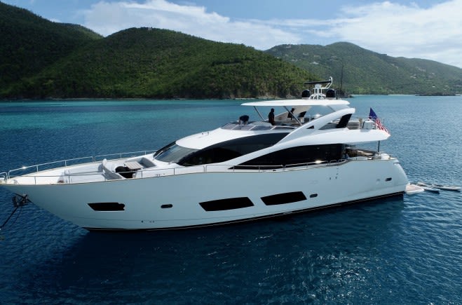 Built in GRP by British yard Sunseeker International, Elite was delivered in 2016 as a Sunseeker 92 model. A thoroughly modern interior accommodates ten guests in four cabins.