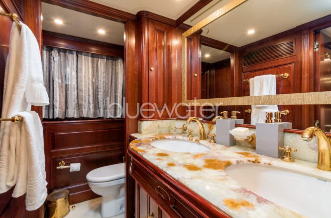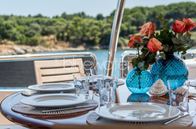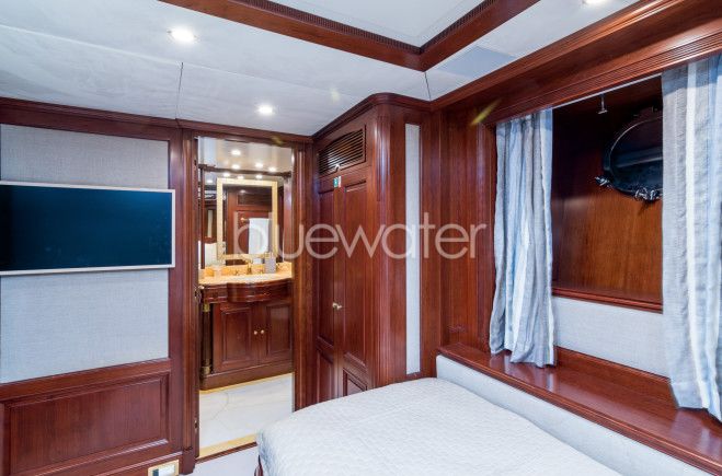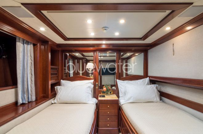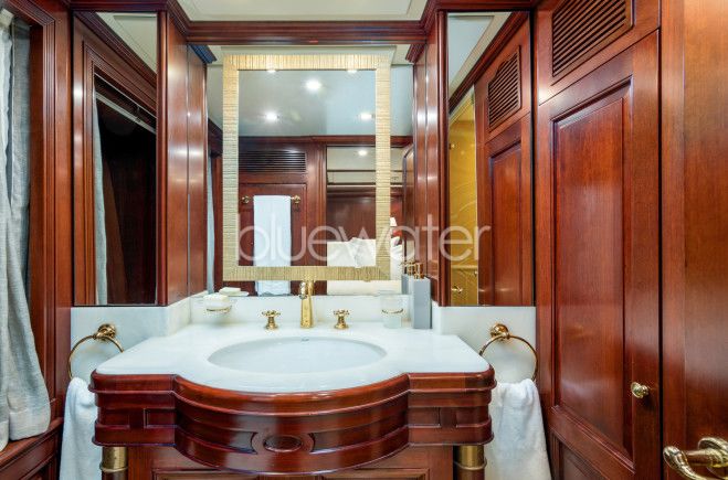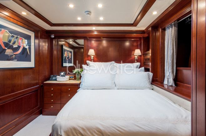 ELEGANT YET RELAXING: A BLEND OF STYLE WITHIN INTERIOR SPACES: Designed and built with ample sea-keeping ability, Endless Summer is also wonderfully livable. Her interior is equally well-planned balancing comfort with functionality. Designed by the French interior designer Francois Zuretti, renowned for his sophisticated and timeless style, his designs seamlessly blend classical elegance with contemporary elements, emphasizing luxury and comfort. The atmosphere is stylish and cozy, a traditional but fresh interior with an European classic twist. Endless Summer has spacious accommodations for nine guests in four staterooms. Her on-deck master stateroom offers 180-degree views and total privacy. The full-beam VIP stateroom has an ensuite and is also privately accessed. The two other guest staterooms, one double and a twin with Pullman are midships on the lower deck.