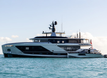 ENTERPRISE is one of the most exhilarating additions to the charter market! Bold, strikingly contemporary and light-filled interior, with an eye-catching silver hull, offer a glimpse of her destiny to be a stellar charter yacht. At an impressive 447GT, ENTEPRISE is more spacious than similarly sized yachts. An exceptionally innovative layout is designed to provide guests luxurious areas to enjoy life on board, offering the perfect blend of outdoor and indoor living spaces. From the main deck dining salon to her al fresco bridge deck and sun deck dining areas, she has numerous options for both informal entertainment and sophisticated spaces to enjoy sublime cuisine from the superb chef. Offering magnificent views, the full-beam master cabin on the main deck has full-height windows, comfortable lounge seating with two armchairs, a private office, soundproofed doors, his-and-hers bath en suite, complete with a central rainfall shower with bench. On the lower deck two VIP cabins and two convertible cabins complete her flexible, family friendly accommodation. For workouts on the water head down to the air-conditioned beach club gym complete with skylight. After dark the tranquil sky lounge doubles as a cinema; the sofa seating is the perfect place to watch a movie with family and friends. The exterior spaces of ENTERPRISE are sleek, sexy and contemporary. The yacht’s exceptionally charter-friendly layout provides three teak decks with abundant lounging areas. The versatile sun deck is a stylish and modern space with a bar, al fresco lounge area, and a stunning glass jacuzzi for a true ‘on the water’ illusion. For privacy in port or to feel the wind in your hair underway, the foredeck seating is just the place to relax. When it comes to fun on the water, she has plenty of toys including a jet ski, two eFoils, two SeaBobs, paddle boards and lots of tow toys, as well as a 14m (46ft) Maori chase tender to get you ashore and let you explore. ENTERPRISE has it all!