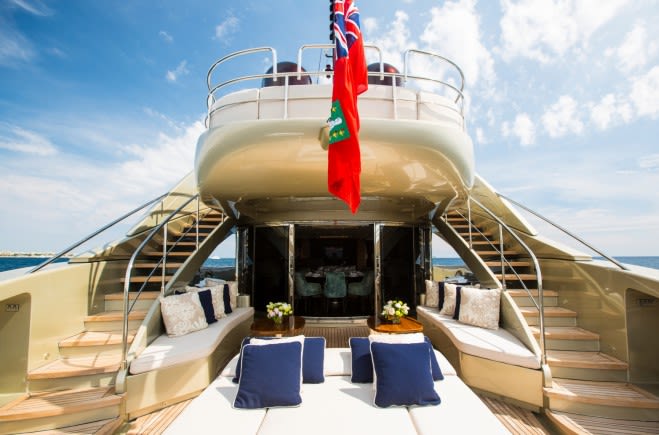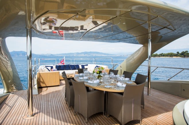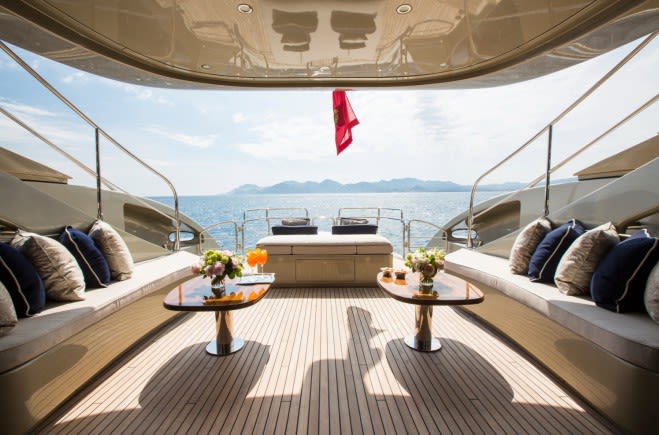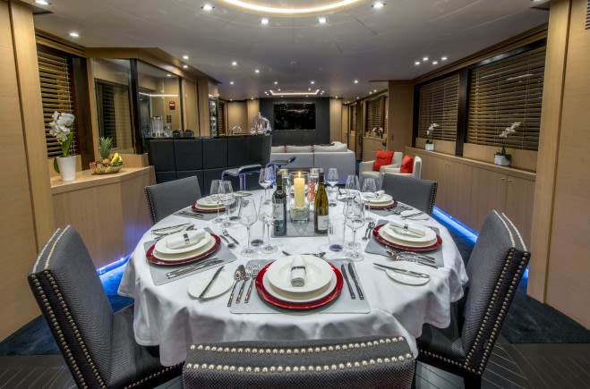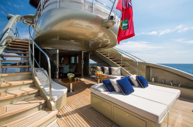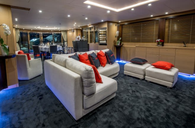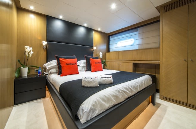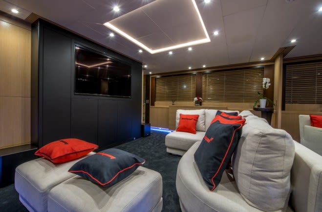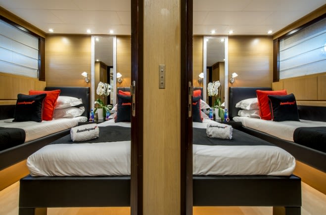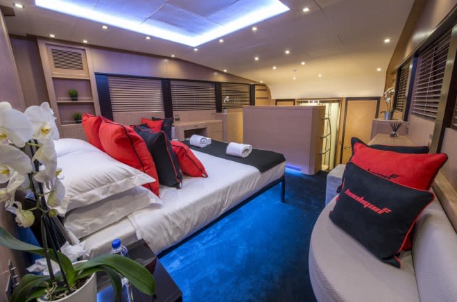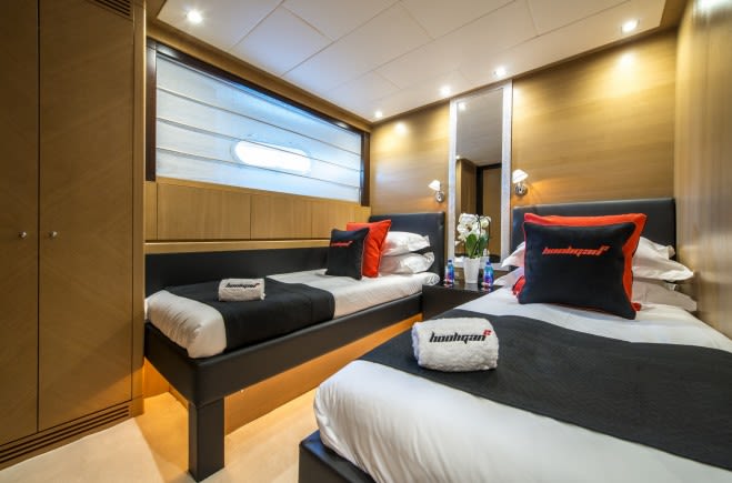 HOOLIGAN II has all the desirable modern facilities - a Jacuzzi, large deck space, speakers throughout, and spacious rooms. Launched by International Shipyard Ancona in 2006 and with an extensive refit in 2019, Hooligan II is a stunning choice of venue on which to enjoy the delights of the Med. Sophisticated interior in modern red, black and rich creams with sumptuous accommodation for up to 10 guests. Her well-appointed, spacious deck areas are designed for maximum flexibility, adaptable to every situation from private sunbathing to elegant cocktail parties.