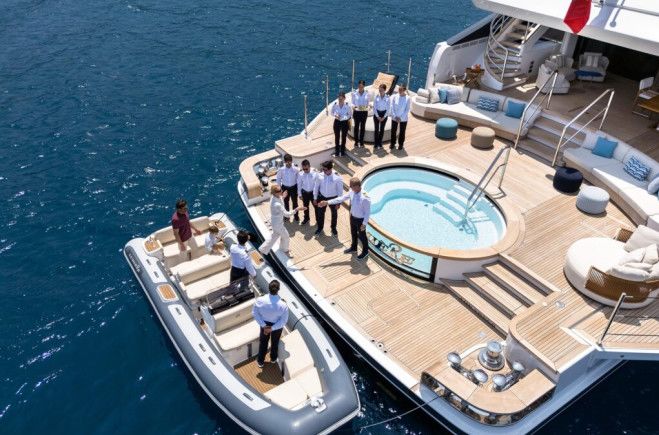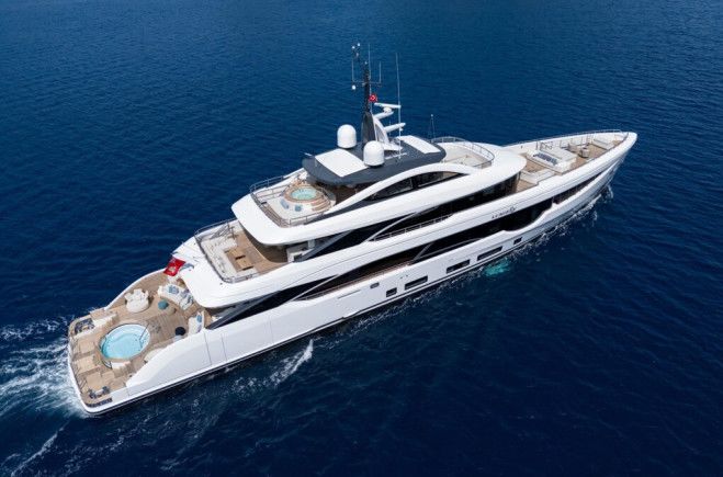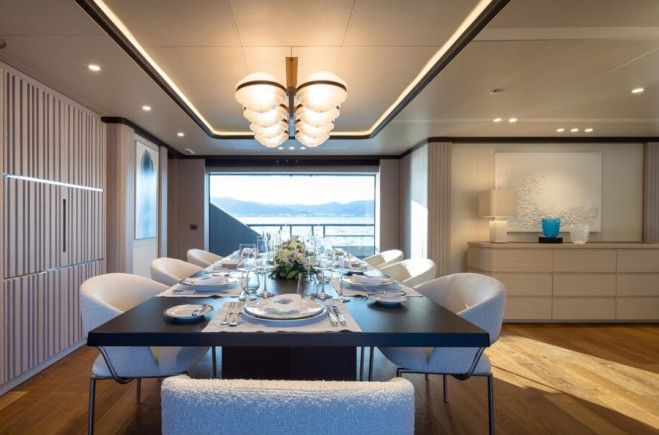 Benetti B.Now Oasis, delivered in 2023 and designed to embody its namesake—light. This modern masterpiece offers a transformative yachting experience through its award-winning Oasis Deck, where folding bulwarks expand the aft into a 116-square-meter beach club, seamlessly connecting the ocean with the interior living space. An abundance of natural light floods every deck, enhanced by panoramic windows and an open-plan layout that erases the boundaries between inside and out. LUMIERE accommodates up to 12 guests in six luxurious staterooms, including a full-beam Master suite on the main deck with its own private balcony, and a 6th suite located on the upper deck. The lower deck hosts three spacious doubles and one convertible cabin for flexible guest arrangements. Guests will enjoy a wealth of exterior lounge and entertainment areas, including a vast sun deck with over 100 square meters of space featuring a Jacuzzi, bar, and oversized sunpads, as well as a foredeck lounge with plush seating and optional shade. With charter availability in France and Greece, LUMIERE is an exceptional choice for those seeking elevated style, comfort, and the ultimate Mediterranean escape.