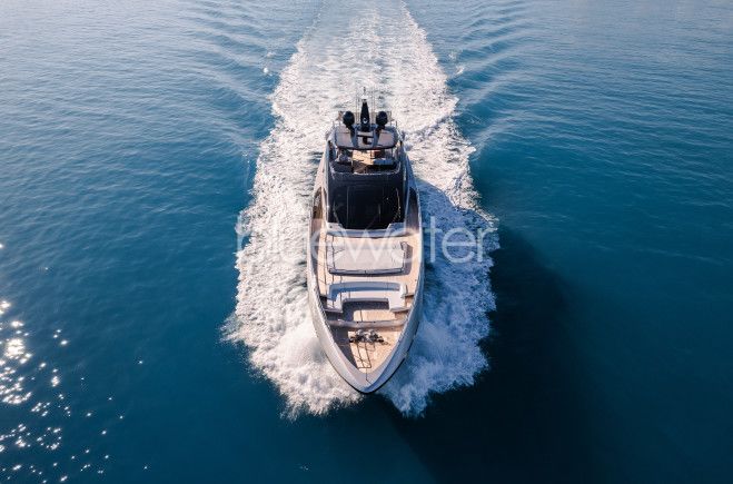 Riva 100 Corsaro delivered Summer 2021, With striking lines, stunning silver hull and a stylish interior combining comfort, elegance and gorgeous colour coordination with a modern minimal approach.