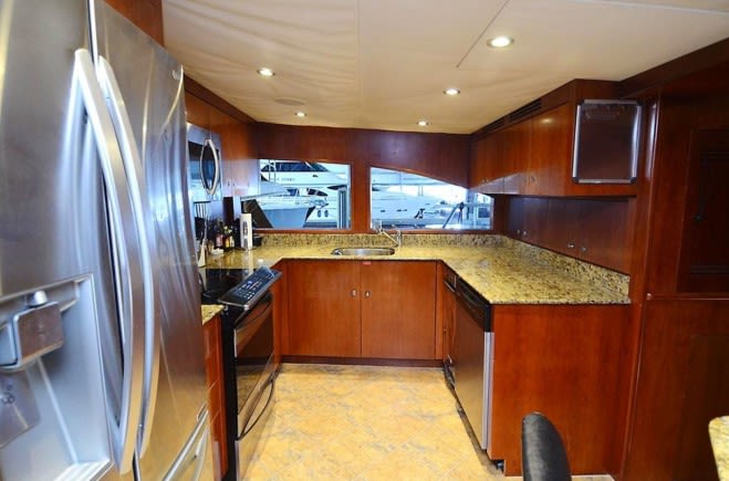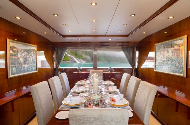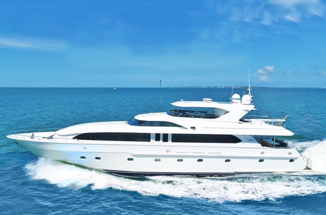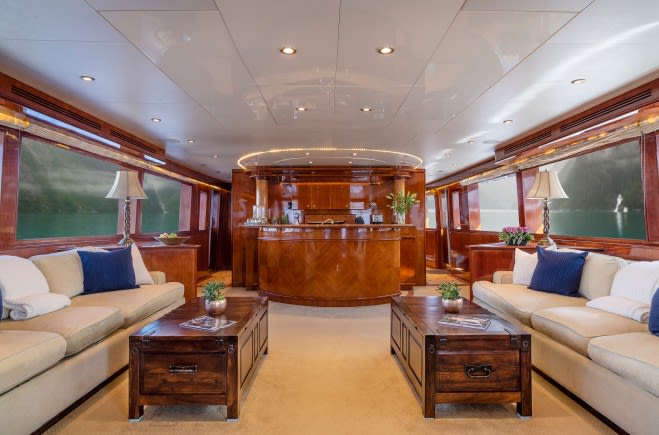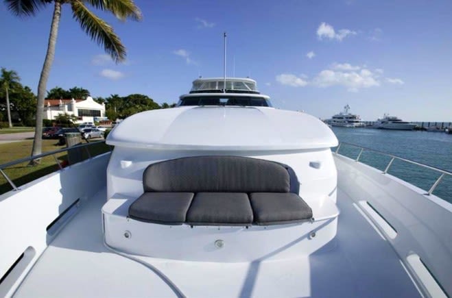 At 105’ Outta Touch provides a luxurious and inviting atmosphere, accommodating 8 guests in 4 plush staterooms. The master cabin has its own writing desk and large ensuite bathroom, there is also a spacious VIP stateroom and two twin cabins, all of which have ensuite bathrooms as well. The main salon has ample seating and a beautiful marble bar that is perfect for entertaining and shaking things up! The private dining salon adjacent to the main salon provides an elegant and intimate dining space. With lovely outdoor dining on the main aft deck and fly bridge, it is perfect for breathing in those warm tropical mornings and beautiful sunsets the Caribbean has to offer.