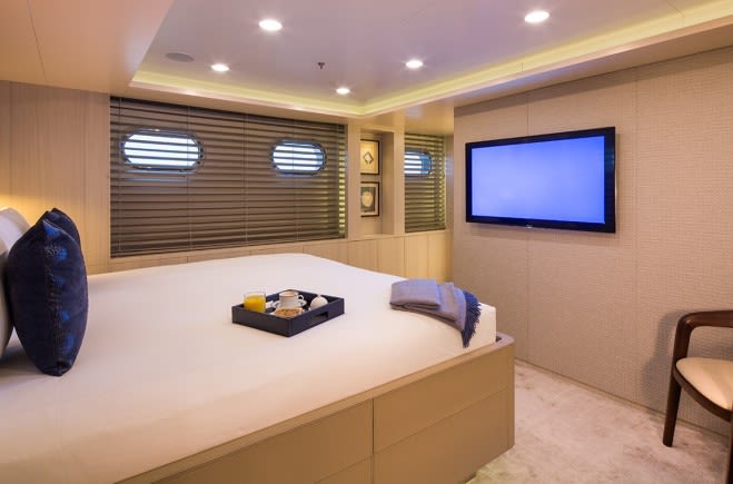 4 lower King-sized guest cabins are in the lower guest area, 2 of which convert to single beds and 2 of which have additional Pullman bunks.