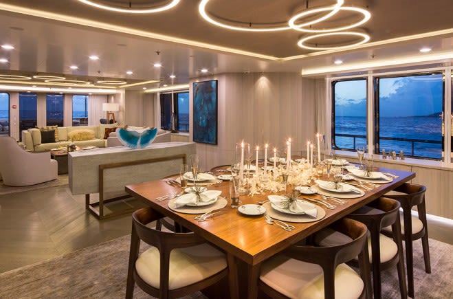 Interior updated to include a six stateroom layout. The extensive upgrades in addition to the completely new interior included all new lighting, AV, furnishings, flooring, exterior paint.