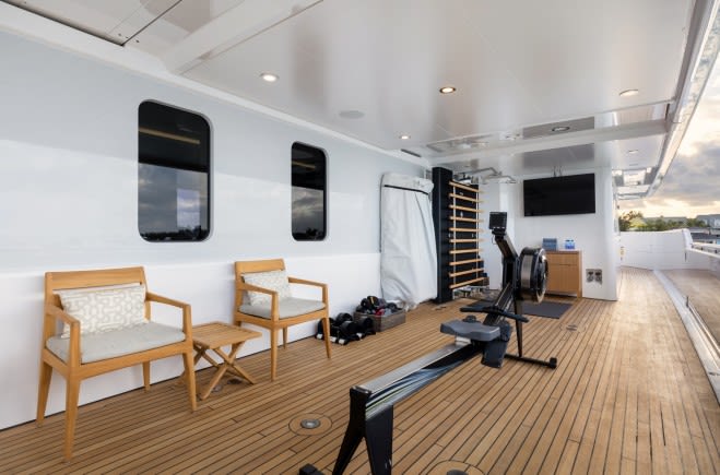 Exterior gym - Technogym equipment including Kinesis, Elliptical and rowing machine with TV/AV facilities