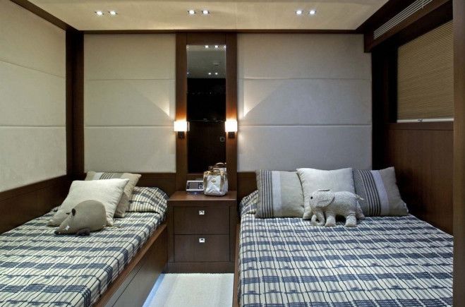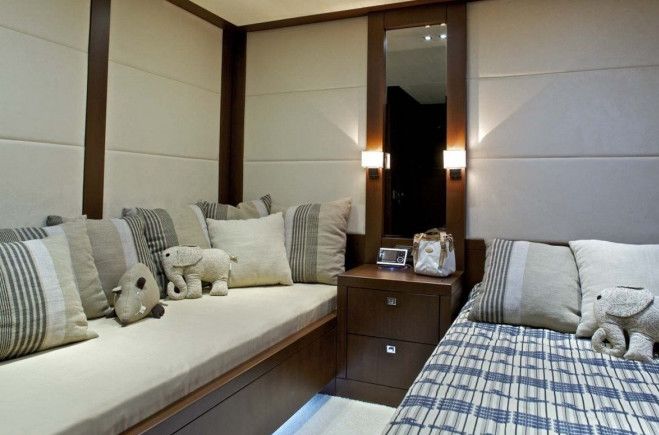 Built by shipyard Leight-Notika in 2004, Sanjana is the perfect yacht for families. In addition to her luxury amenities, she is equipped with safety nets all around the vessel, on the main deck and the sun deck, for extra peace of mind for any parents on board. She also has safety doors throughout her interior.