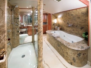 Serengeti’s layout sleeps up to 12 guests in 5 rooms, including a master suite, 2 double cabins, 2 twin cabins and 2 pullman beds. She is also capable of carrying up to 7 crew onboard to ensure a relaxed experience. Timeless styling, beautiful furnishings and sumptuous seating feature throughout to create a luxurious and comfortable atmosphere.