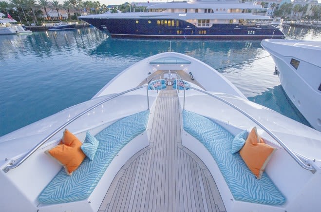 - Complete eisen glass for main aft deck and fly bridge for added, comfortable seating. Decks are temperature controlled with heating or AC.