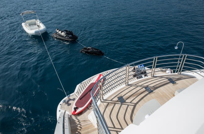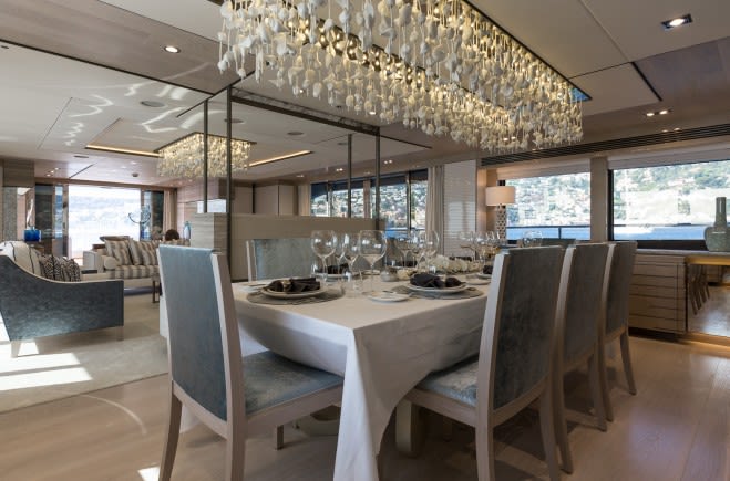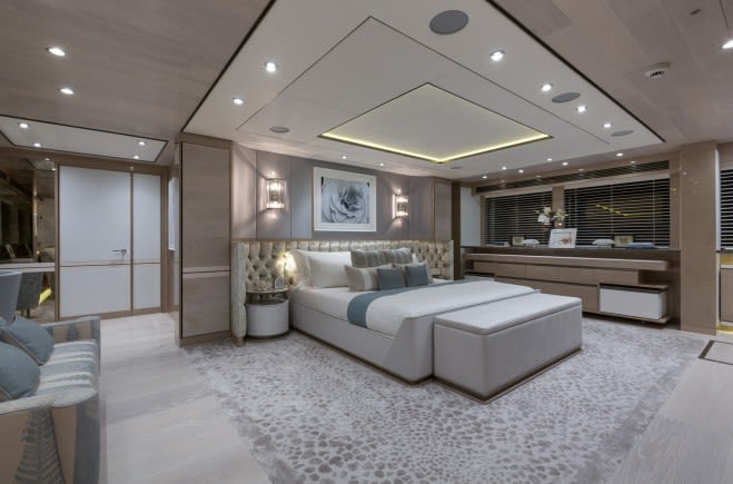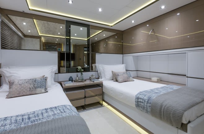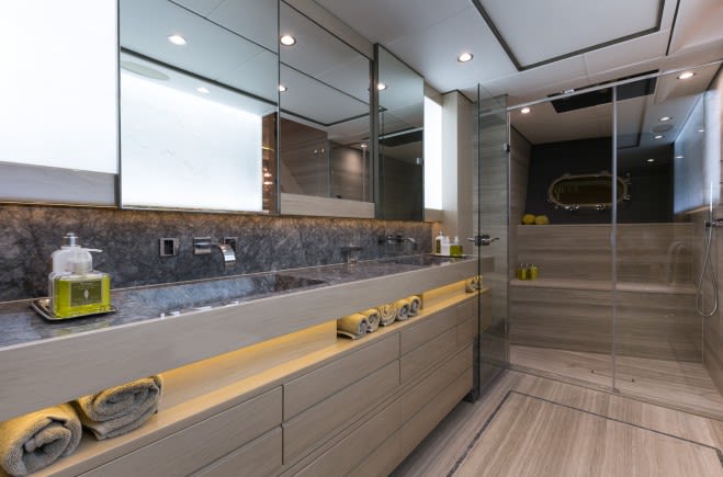 Thumper comfortably accommodates up to 12 guests in five staterooms, including a master suite, two double staterooms and two twin staterooms with additional pullman berth each, all with en-suite bathrooms. The master suite comes complete with a 55’ Samsung flat screen television and a System Orca facility for audio/visual enjoyment. Two double and two twin cabins have 32 inch Samsung televisions and all cabins have full en suite facilities.