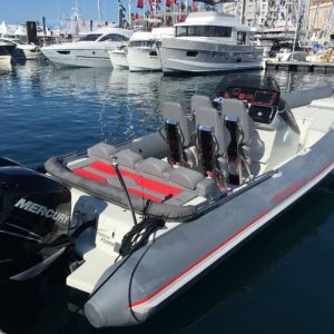 FAST ONE was delivered in 2014 by the Greek shipyard Technohull, based in Athens. Powered by twin 250hp Mercury Verado engines, she reaches top speeds in excess of 60 knots and has been designed for seaworthiness, riding comfort and versatility. These features, along with her swim ladder and water ski pole, make this 8.88m RIB a popular choice of yacht tender.