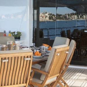 The great deck spaces that GIORGIA offers on all three levels, comprising a spa pool and bar on the sun deck, makes this a fantastic yacht for relaxation and enjoyment.