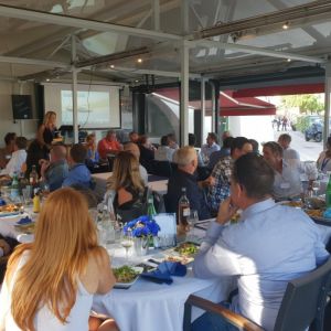 The chilled champagne was flowing and then we all took our seats to enjoy a delicious meal whilst swapping hilarious, and sometimes shocking, stories from all our experiences in the charter and yachting industry.