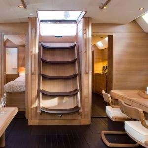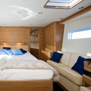 In terms of maintenance, Nefertiti has had her decks sanded, topsides re-touched and polished, rig surveyed, her shaft and rudder pulled and a new cruising sails wardrobe. She also holds a massive tender garage with a Williams 385 jet tender.