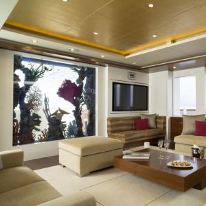 High in volume yet under 500 GT, Nassima, designed by Oliver van Meer has extraordinary features, including a large aquarium on main deck bringing ocean life on-board, an expansive sundeck, owner's private terrace, a stern garage which holds a Mini Cooper S and two Ducati devil motor bikes.
