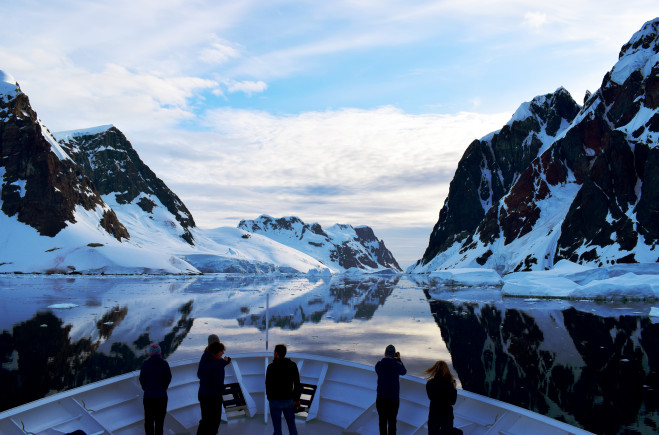"This photograph was taken on the Antarctic Peninsula in the Lemaire Channel. Yachting often takes you to places that very few are fortunate enough to travel to and let’s you experience things you couldn’t imagine in your wildest dreams. One such occasion brought us to the Lemaire Channel, at the end of February, as the sun started setting for the first time over the Peninsula. Where crew and guests alike, stood in awe of the sights ahead. Cruising through mirror calm waters, with the faint crackle of ice, you could easily get lost in the wonder of it all.