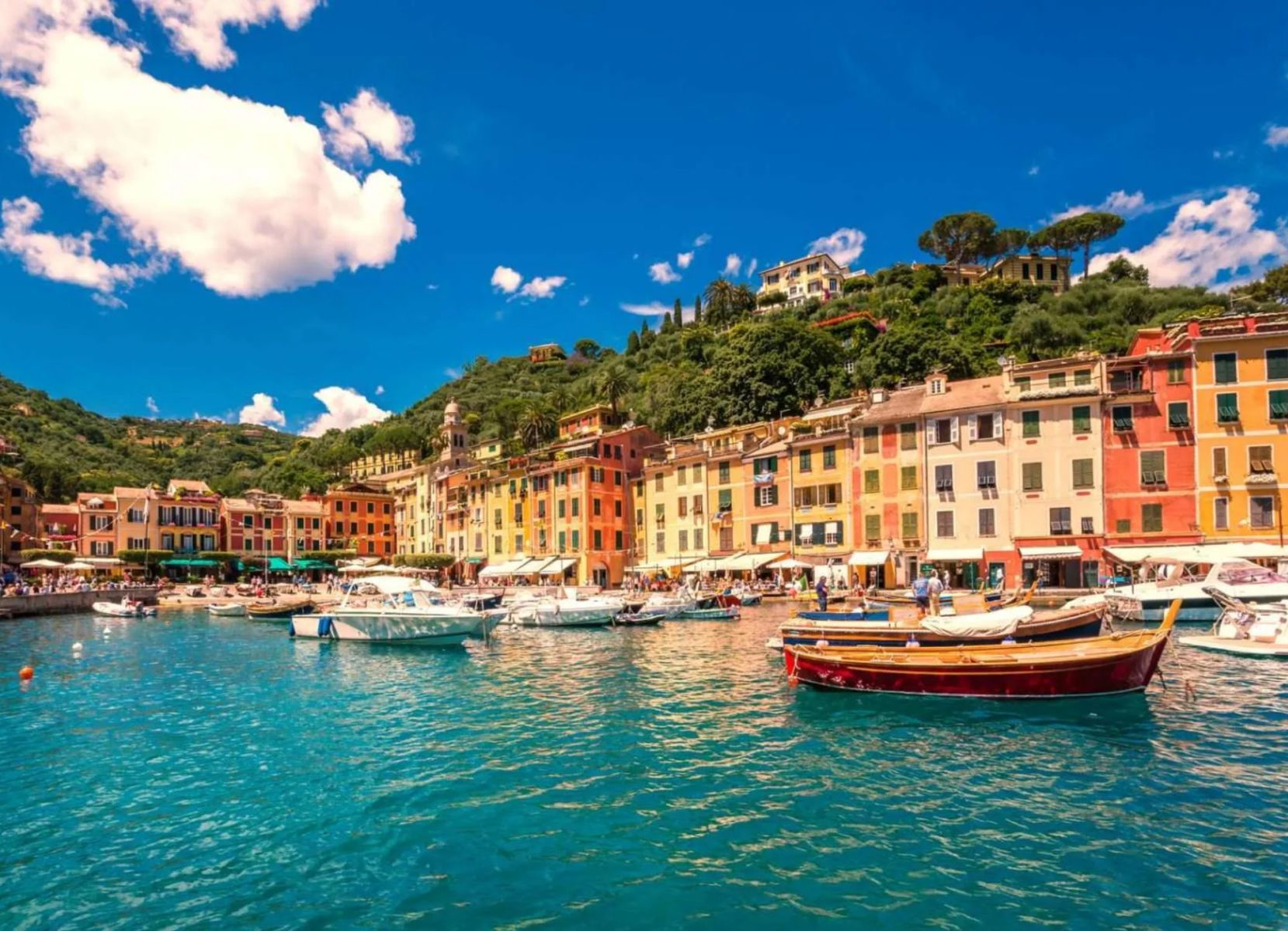 Portofino is where laid-back Italian charm meets the high life. Drop anchor for a waterfront lunch at Da Puny, Trattoria Tripoli, or Taverna Marinaio, and indulge in Ligurian flavours like fresh pesto, bruschetta with deep-red tomatoes, and silky Parma ham. Enjoy gelato from Calata 32 as you browse designer boutiques from Louis Vuitton to Brunello Cucinelli. Hike up to Castello Brown for panoramic views, dive down to the submerged Christ of the Abyss, or unwind at Bagni Fiore beach club by day and dance at Covo di Nord Est by night. This is Italy at its most refined.