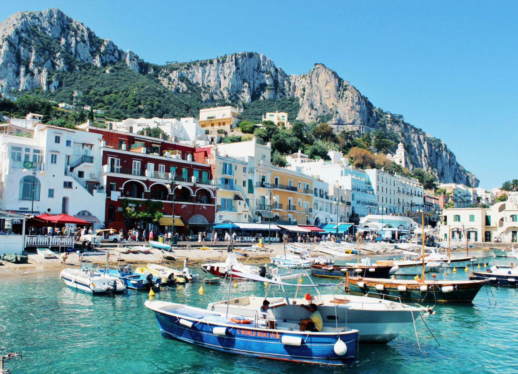 Capri lies just across the water from Ischia, offering two marinas: Marina Grande and Marina Piccola. The islands Greek roots are reflected in its name “Kapros,” meaning wild boar. From the port visitors can access Roman ruins, walk through charming streets or shop for hand-carved cameos and coral. Don’t miss a visit to the Piazzetta, Capri’s iconic square, ideal for people-watching over an espresso.