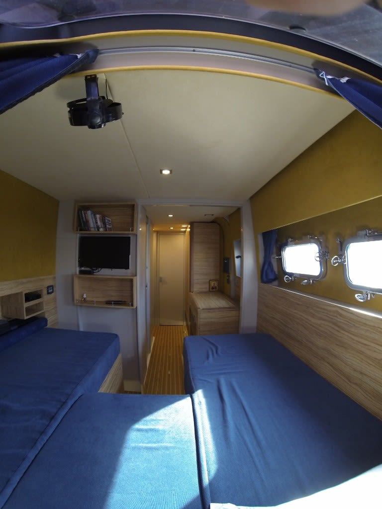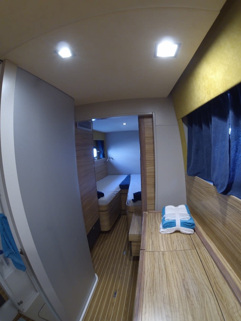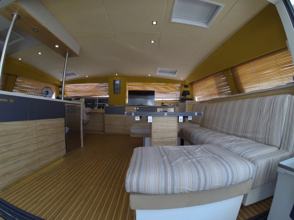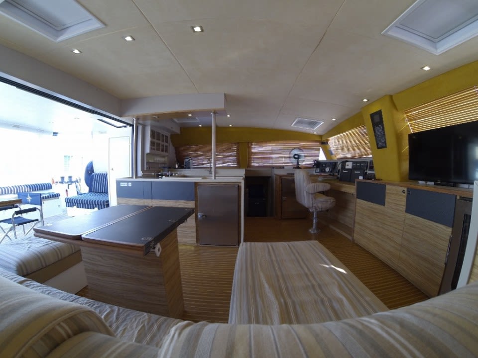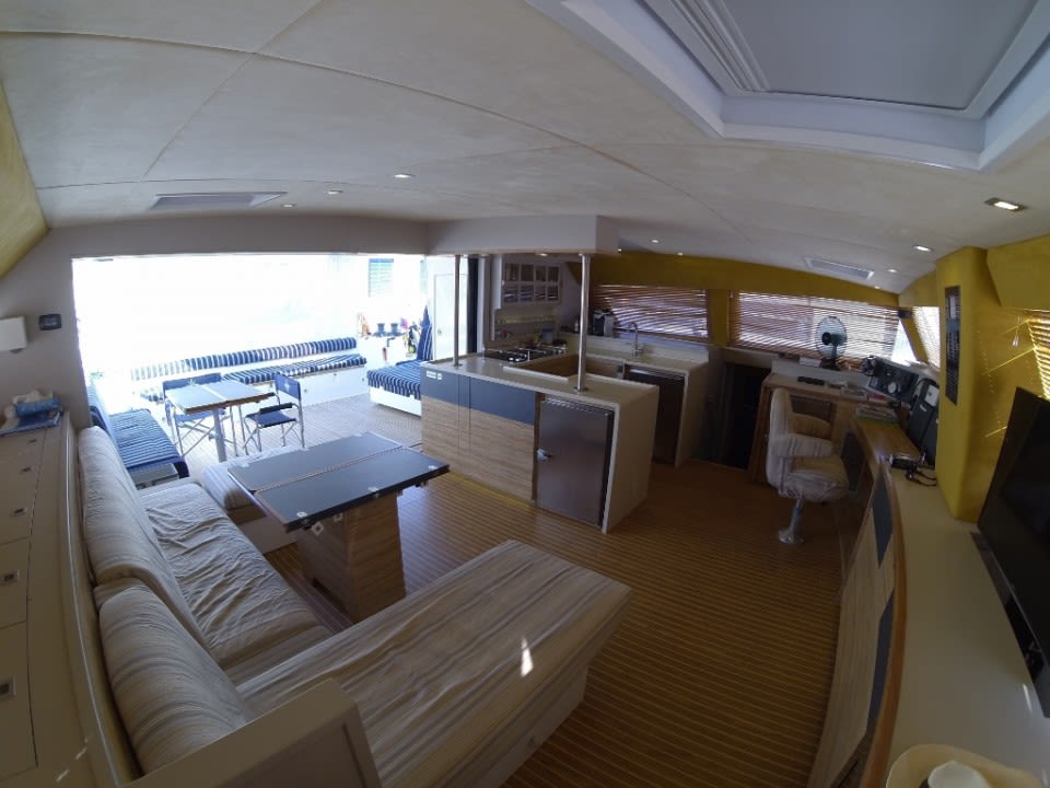 The Catana 70 exceeds all expectations; an exceptional model with a sleek profile and racy lines. The combination of technical excellence, and a design and performance which is constantly being advanced. A luxury interior which is both refined and functional, minute attention to the smallest of details, exquisite materials, all to offer a way of life on board a yacht without limits. The jewel in the crown of the Catana yard, the Catana 70 will seduce the sportsmen looking for feel and adrenaline, as much as the connoisseurs looking to embark on a long trip in total refinement. Seen from the outside, the Catana 70 is equipped with revolutionary new curved daggerboards, which give a hydrofoil effect. It benefits also from good hull length and increased power, creating an ultra-performance cruising catamaran. The sailplan has all the features of a racing boat, with a short mainsail which is easy to handle and a large headsail combining to give the Catana 70 unrivalled performance. Seen from the inside, the Catana C70 has been entirely redesigned for maximum comfort. Offering even more living space than all the other models, the Catana 70 has spacious cabins as well as many lockers and storage areas ensuring optimal conditions for a long trip. This yacht was built in 2015 for an owner with a big yacht racing history, keen to realise a dream of a circumnavigation. In this respect, the yacht has many extras and equipment from the build stage to make this a reality, with the trip completed in early 2017.
