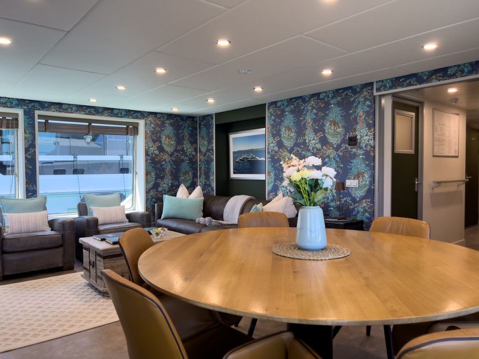 Originally built as a support vessel, she has been modified to accommodate 6 guests in 3 well-appointed cabins. The interior is a great contrast to her functional and robust exterior. Every detail throughout is vibrant and colorful, alluding to the yacht’s potential for fun. Forward on the main deck there is a master cabin with a queen bed and ensuite. Aft of the master are two twin cabins each with their own ensuite.