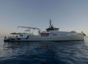 BAD COMPANY SUPPORT has excellent seakeeping capabilities, thanks to her wave-piercing Sea Axe bow & advanced Quantum zero-speed stabilizers. She has a heavy-duty crane that lifts up to 6.7 tons, so a variety of vessels and vehicles can be kept onboard, giving a broad range of possibilities for exploration. Not only can the main deck store a variety of items, this deck can also be used to host parties of all sizes, as a massive yoga studio or a gym, or even as a landing pad for helicopters.