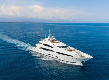 This 40.05 metre Tri-deck Sunseeker 40m yacht for sale, is one of the finest examples of contemporary superyacht building, expertly finished using the highest quality materials and techniques and boasting a significant volume of 338 GT where the sheer scale and layout of this immense yacht is awe-inspiring. The Sunseeker 40m yacht epitomizes everything that represents a Sunseeker motor yacht. Built on a GRP hull and superstructure to RINA Class by the British shipyard Sunseeker, she was delivered in 2014 as one of 14 of the 40M Sunseeker hulls and has been maintained to a high standard throughout her life, finding herself today in pristine condition. Her Tri-deck design features include a raised pilothouse, sundeck dining and hot tub, hydraulic swim platform, tender garage and main deck foldout balcony. Amenities for guest comfort also include zero-speed and underway stabilizers. This Sunseeker 40m yacht comfortably accommodates up to 12 guests in sublime surroundings, including a large full-beam Master suite forward on the main deck with same level en-suite. Further 4 guest cabins are found on the lower deck comprising 2 doubles, and 2 convertible twin cabins with Pullman berths, all with en-suites of course. There also are quarters for up to 9 crew in 5 cabins, with the Captain’s cabin on the bridge deck, conveniently located adjacent to the wheelhouse.