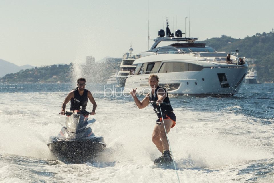 - Very high spec with custom design upgrades such as exterior lights, swim ladder, garage upgrades, bow storage upgrades with extra fridges and commercial icemaker, premium sound throughout.