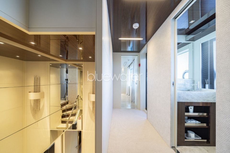 ELYSIUM I can comfortably accommodate 11 guests in 5 luxurious ensuite cabins, including a full beam master suite, 2 VIP staterooms, a double and a twin cabin convertible into a double with Pullman.
