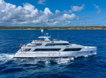 Twin Caterpillar C32 engines deliver a maximum speed of 16.5 knots and a cruising speed of 11 knots, with a transatlantic range of 4,000 nm.