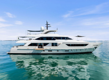 This vessel epitomizes Sanlorenzo's hallmark construction, harmoniously blending cutting-edge technology with exquisite craftsmanship. Designed by Francesco Paszowski, with Marty Lowe interior, this prestigious SD126 Sanlorenzo is a U.S. spec'd yacht, delivered in June 2022 as one of only 18 of the SD126 models produced. Powered by twin Caterpillar C32 Acert diesel engines (1600 hp each).