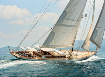 With a free suspended spade rudder and a similar righting moment to that of a J-Class, she is a powerful and exciting sailing yacht.