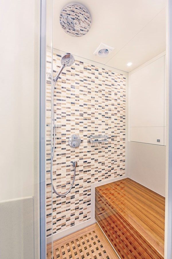 6.10. Teak floor inserts 15 mm (with supports in the center) and seats in showers.