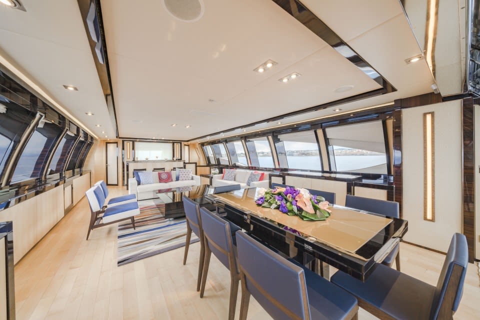 A Palmer Johnson 120 Sports Yacht designed to be at the helm of eye-catching innovation, powerful performance and sleek lines. KJOS’s exterior and interior designed by Nuvolari & Lenard, globally recognised Italian designers. The PJ 120 series combines the attractive style of an open yacht while producing the space and usability of a flybridge yacht.