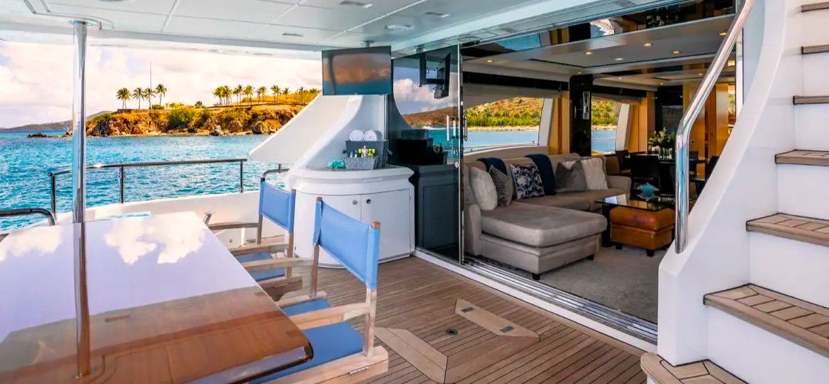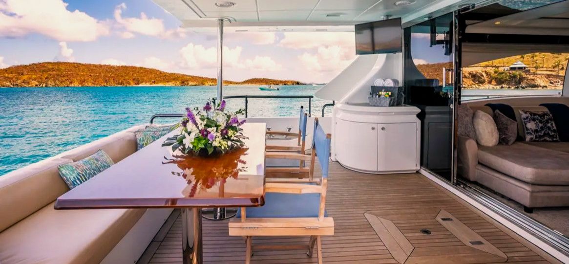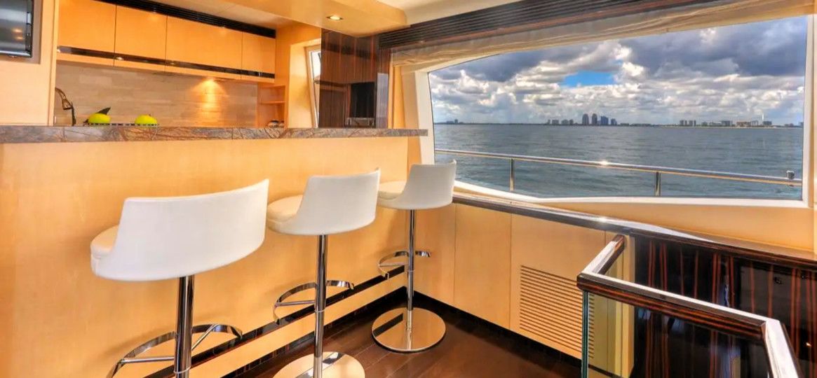 This new version features a redesigned flybridge, main deck and lower deck to provide maximum comfort, style, and versatility. Smooth shapes, sleek lines, and the sexy Italian style made popular by Azimut is exemplified in this Azimut 84 Flybridge. Extraordinary outdoor living comfort is enhanced through a redesigned flybridge with fully equipped bar with seating, large outdoor BBQ, lounging tables, hydraulic arm, and ample seating. The main deck provides owners with an intelligent layout, the galley has been widened to provide additional space as well excellent visibility and direct serving access to the new bar area.