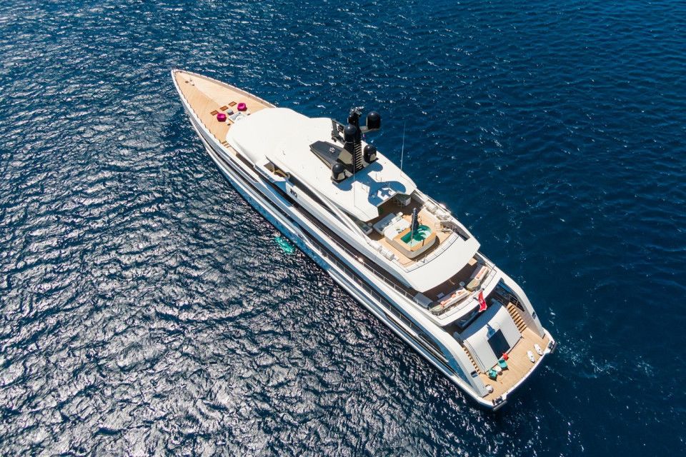 Her outdoor spaces are vast and versatile with options for lounging and entertaining in each area, including a private foredeck area, forward of the master suite. Whether it’s the jacuzzi and al fresco dining for 12 on the owner’s deck, or the pool on the sundeck, she has a lot to offer. RIO has a bar on each floor, that comes complete with rare marbles from all over the world.