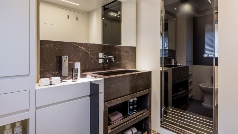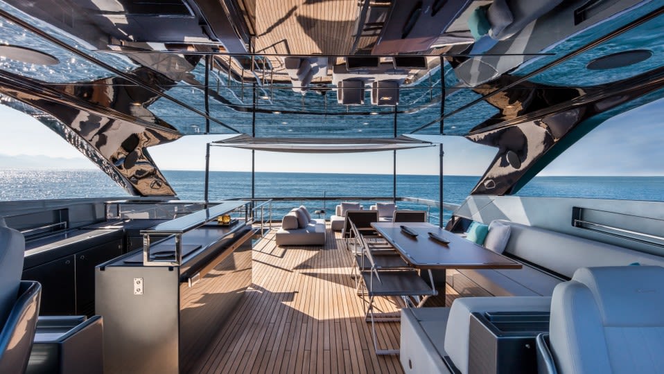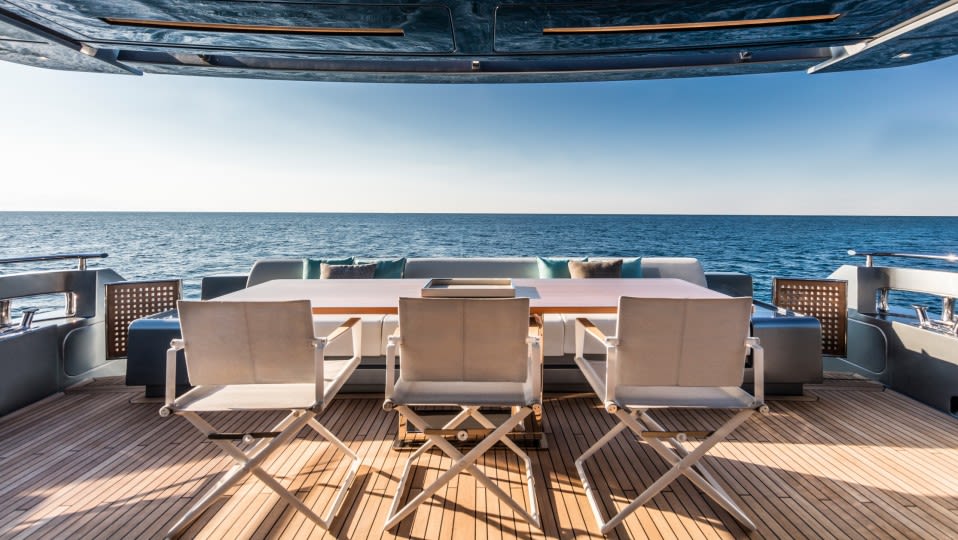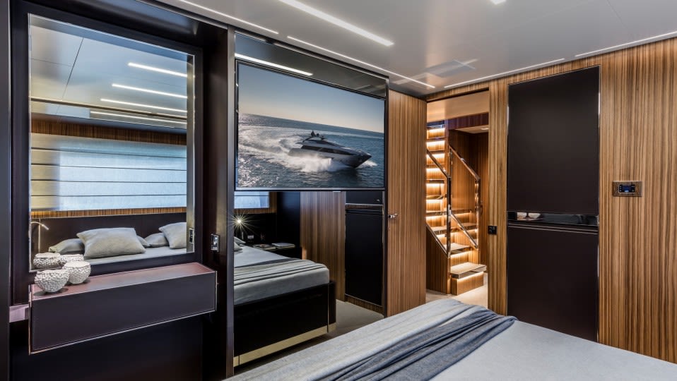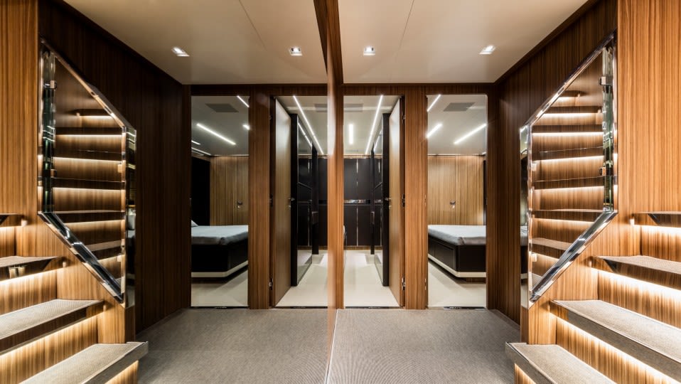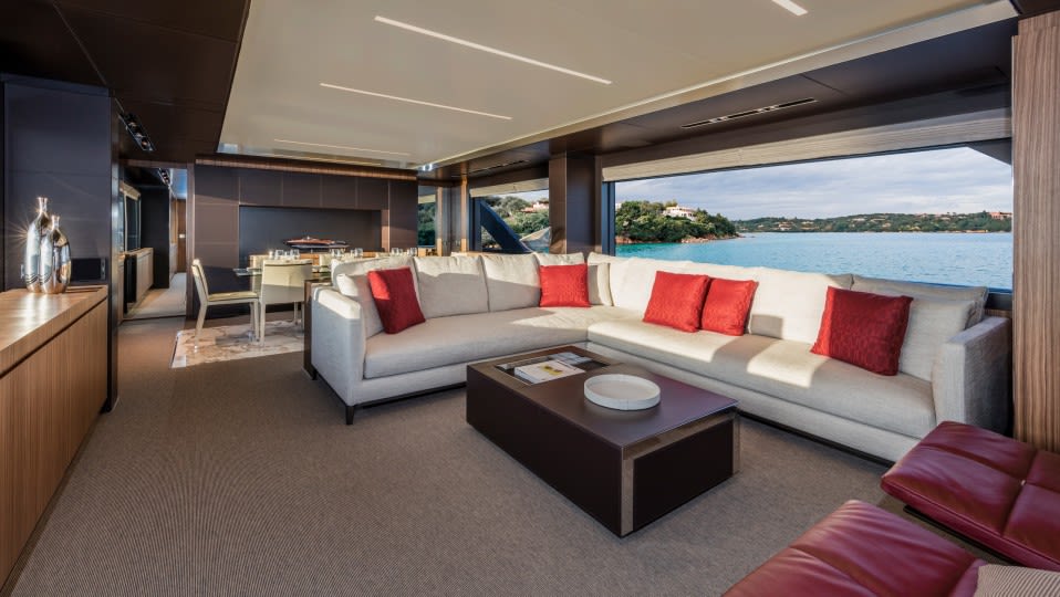 yachts have left off, the 100’ Corsaro forges ahead in the wake of her illustrious forebearers, with a harmonious fusion of comfort, performance, technology, design, safety and style. The interior is perfection within a masterpiece, set off in particular by the signature touch of the masters of exquisite Italian design.