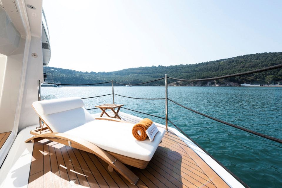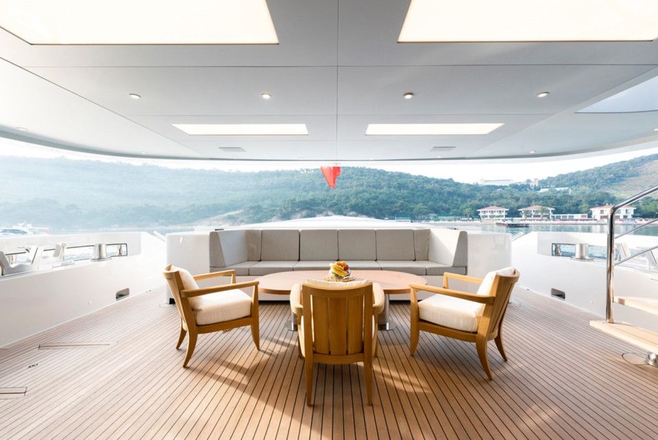 On the main deck, there is a gym and a sauna. On the upper deck, there is the Sky Lounge and a dining area with sliding doors, which once retracted create the feeling of an open but sheltered outdoor dining area.