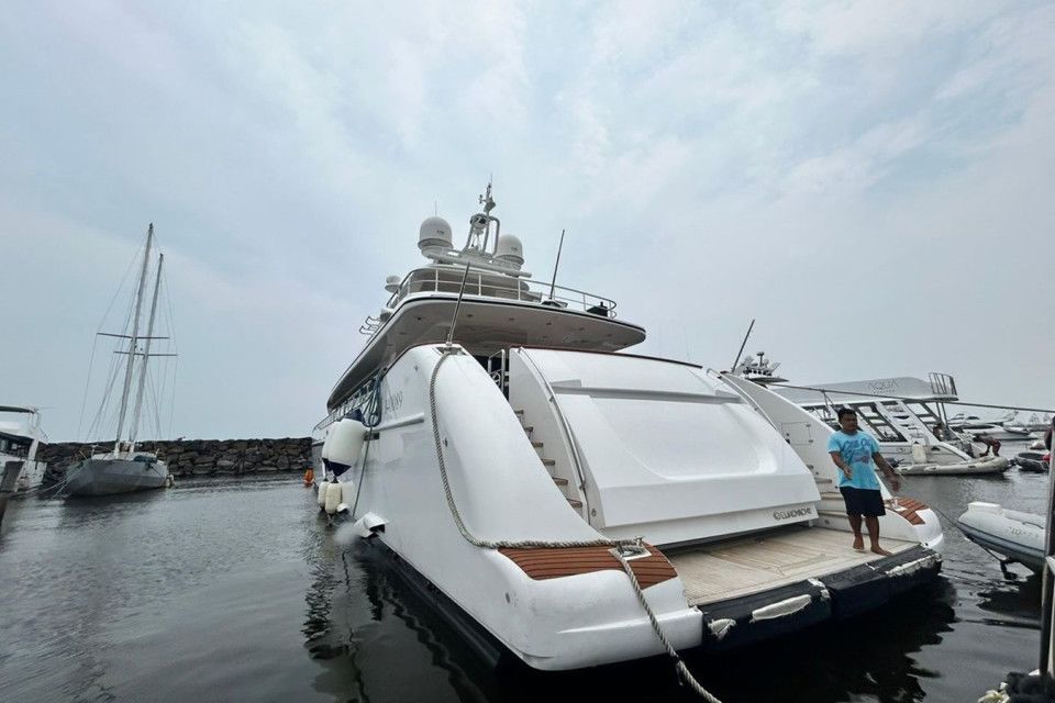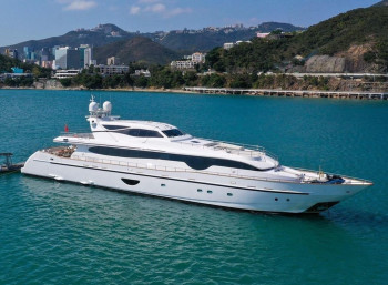 This yacht is propelled by three Caterpillar C32 diesel engines to reach a top speed of 20 knots and a cruising speed of 15 knots - she is fully capable of long range cruising. The electrical network is powered by two Kohler John Deere 89kW generators. There are a total of 4 en-suite staterooms to accommodate up to 9 guests, and 3 crew cabins with 3 crew bathrooms to accommodate 6 crew members on board. She has a gross tonnage of 269 GT and a 7.32 metre beam.